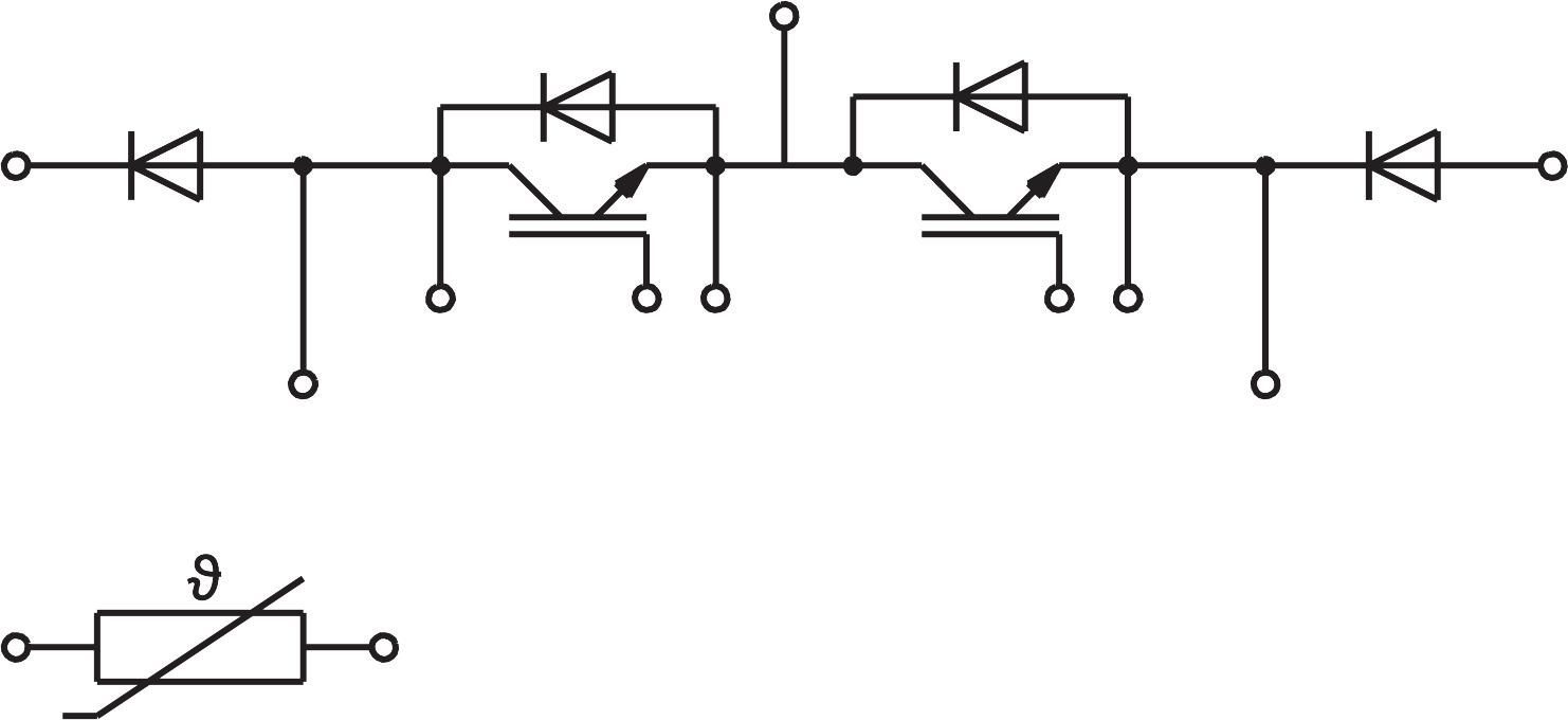 | Features | Solderless assembling solution with PressFIT signal pins and screw power terminalsIGBT Trench Gate TechnologyV<sub>CE(sat)</sub> with positive temperature coefficientLow inductance caseReliable mechanical design with injection moulded terminals and reliable internal connectionsUL recognized file no. E63532NTC temperature sensor inside |